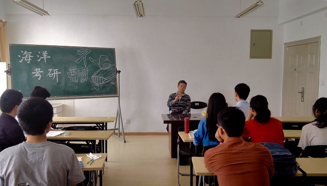 下午两点,同学们入座完毕,学长学姐准备就绪,考研动员大会在主持人激昂的开场和同学求知的急切目光中正式开始。齐义泉院长首选针对现在海洋学科在国家的战略定位,以及国家对高端海洋专业人才的需求方面,深入浅出地为同学们分析了继续深入学习海洋的重要性,并罗列了全国开设海洋相关学科的科研单位,对各单位的研究方向和知名学者做了简短的介绍,同学们根据自己的学习兴趣,更加明确了奋斗目标。苏文海学长根据自己保研成功的经历向同学们介绍了保研过程中会遇到的问题,以及在报考研究生导师时候的注意事项。陈睿、仇颖两位学姐分别分享了考研辅导资料的选购,复习节奏的把控,以及考研过程中心态调整和考研复试的经验技巧。同学们全神贯注,积极参与,原先设置的会后提问环节根本不足以让每个同学的关注的问题得到解答,大会临时改为座谈会,同学们三五成群与学长学姐们交流,动员大会在同学们依依不舍中落下帷幕,每个同学的脸上都写满了收获。