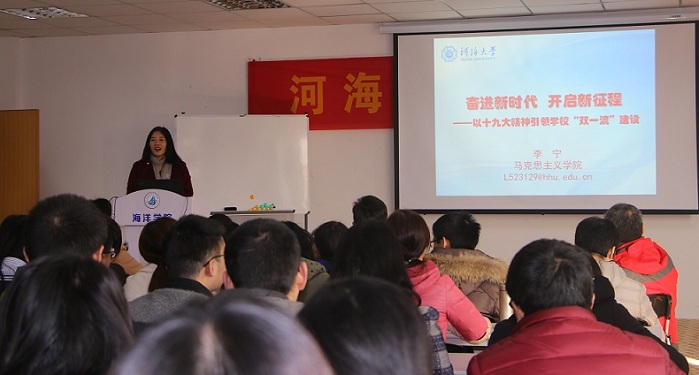 为落实学校党委关于准确把握、深刻理解、认真贯彻党的十九大精神的要求,12月12日黄瓜视频 邀请马克思主义学院李宁副教授为全体师生作题为“奋进新时代 开启新征程——以十九大精神引领学校‘双一流’建设”的宣讲。学院党总支王永芝书记主持宣讲会,学院领导、教师、学生共100余人参加。