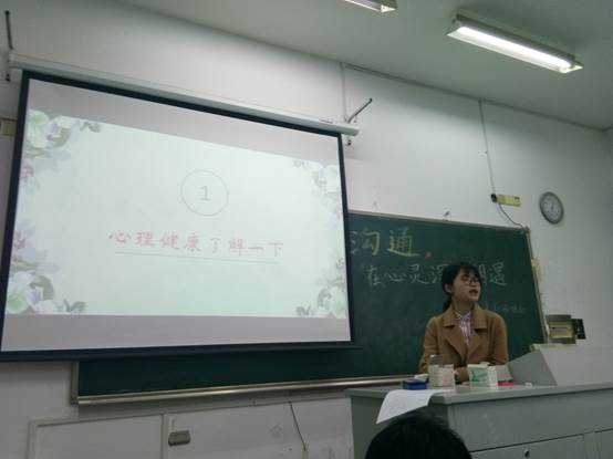 首先,我们在主持人的引导下了解了心理健康的含义与大学生常见的心理健康问题,同学们从中可以发现自己目前存在的困扰。