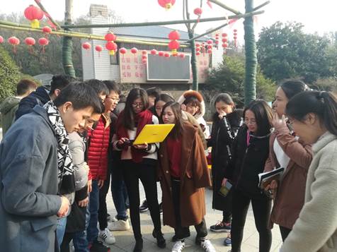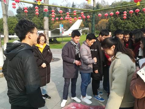 班会以出游踏青,游戏互动,宣传教育的形式开展,组织同学在国防园进行游览参观,同时开展以“说、学、斗、唱”为主题的游戏。游戏开始前,将班上同学分为5组,每个小组通过游戏获得相应的积分,四轮游戏后,分数最高的小组获胜并获得奖励。游戏主题“说、学、斗、唱”分别对应台词传递、你划我猜、答题接力和接歌词四个游戏,最后全班同学前往鼓楼公园开展“解开心中结”活动,并让同学自愿说出最近的苦恼等心结,和同学交流,解开心中的烦恼。