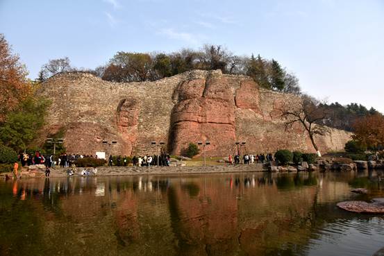 同天下午,大家来到“钟灵毓秀”石头城遗址公园,在各位带队老师的带领下,四组同学重新焕发了精神,一下车就聚精会神地开始倾听老师的专业讲解并积极地开始找寻所提到的地质现象。其中同学们了解到了“洪积砾岩”,也对“断层”的划分有了粗略地认识,以及通过石头叠瓦状的排列来判断水流的方向,还有“水道沉积”,“辫状河道”等内容。同学们对这些专业知识由于有了实物的比照并不觉得枯燥乏味,反而积极地向老师提出了心中的疑惑,而有了专业老师的一对一讲解,更是让同学们在学习上有了更浓厚的兴趣。