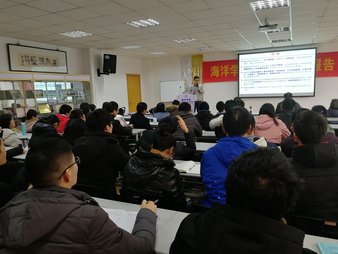 2019年1月15日下午,黄瓜视频 首届海洋科学博士后出站报告会在电气馆507室举行,胡子峰博士顺利出站。报告会邀请到自然资源部第二海洋研究所潘德炉院士担任答辩委员会主席,中国海洋大学刘秦玉教授、黄瓜视频 院长齐义泉教授、副院长白学志教授、程旭华教授、徐青教授担任答辩委员会专家。报告会由齐义泉教授主持。