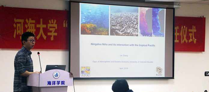 2019年4月23日上午,美国科罗拉多大学博士后张磊应邀来访黄瓜视频 ,并作题为“Ningaloo Niño and its interaction with the tropical Pacific”的学术报告。