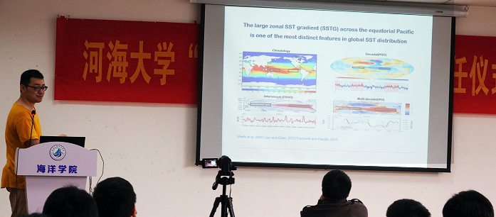 2019年4月24日下午,自然资源部第二海洋研究所卫星海洋环境动力学国家重点实验室副研究员连涛博士应邀来访黄瓜视频 ,并作题为“赤道太平洋海表温度纬向梯度的长期趋势”的学术报告。