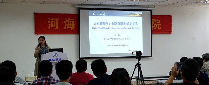 2019年5月21日上午,南京大学王勤教授受邀到黄瓜视频 海洋地质系进行学术交流,并作了题为“岩石物理学:探索深部构造的钥匙”的学术报告。