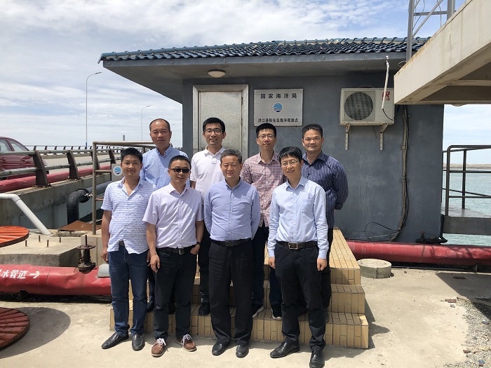 齐院长一行还在堵盘军副站长的陪同下考察了洋口港海洋环境监测站、洋口港阳光岛海洋观测点和附近的海岸带, 拟进一步落实在海洋水文、气象观测等方面的合作。