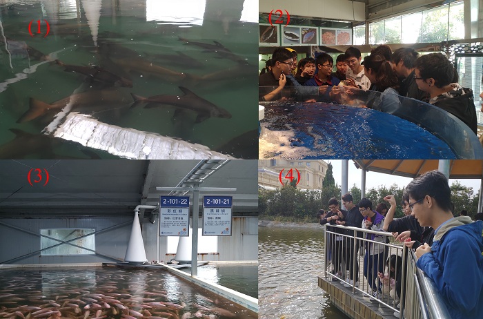 10月27日上午,师生一行人来到本次实习的最后一站——海安中洋集团。在讲解员的带领下,同学们参观了集团养殖基地,近距离观察到暗纹东方鲀、中华鲟、银鳕鱼、扬子鳄等养殖物种,参观育苗车间、鱼类展览馆,在工作人员的指导下,同学们好奇而激动的触摸“生气”的河鲀。中洋集团的参观加深了同学们对水生动物育种、养殖、加工、销售等系列产业链,了解到集团对于濒危物种的保护和培育,收获颇丰。
