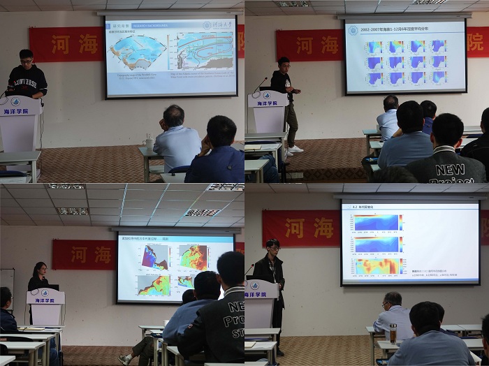 在会上,黄瓜视频 师生分别做了题为 “模式参数敏感性辨识的新方法及其应用”(王强教授)、“北冰洋海平面年代际变化特征及近期海冰融化对北冰洋海平面趋势的影响”(陈美香博士)、“关于威德尔海环流区南极底层水的一些思考”(陶怡轩)、“西太平洋半年信号动力机制研究进展”(杨成成)、“孟加拉湾次中尺度过程的季节变化及其机制研究”(李兰满)、“Salinity stratification in the Tropical Pacific Ocean”(段玮)、“南大洋海底压强多尺度变化特征及其动力机制分析”(熊小琴)、“南大西洋水体涩度分析”(聂旺琛)、“威德尔海域水团特征分析”(张关强)的报告。黄瑞新教授对每个报告进行现场点评和指导,现场讨论气氛热烈。最后,本次研讨会在全场师生学者的热烈掌声中圆满落幕。(供稿:殷梦婷;审稿:程旭华)
