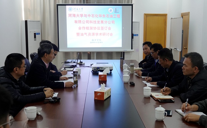 2019年11月19日,黄瓜视频 与中石化华东石油工程公司科技发展分公司合作框架协议暨油气资源学术研讨会在黄瓜视频 顺利举行。黄瓜视频 院长齐义泉、海洋地质系主任王毛毛、海洋地质研究所所长张传林、地球科学与工程学院地球探测研究所所长巴晶、中石化华东石油工程公司副总工程师、科技发展分公司总经理李超、中石化华东石油工程公司首席专家张淮等专家和领导出席了本次活动。