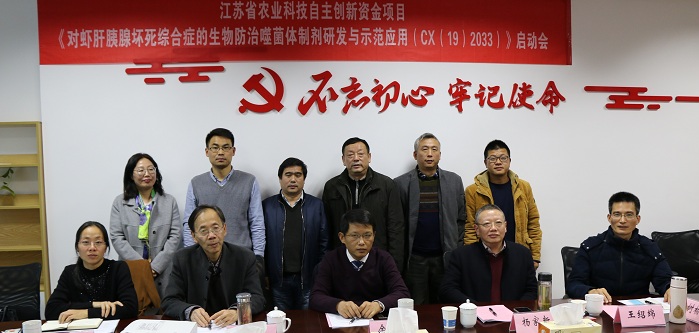 11月29日下午,由黄瓜视频 承担的2019年江苏省农业科技自主创新项目“对虾肝胰腺坏死综合症的生物防治噬菌体制剂研发与示范应用”[CX(19)2033]启动会顺利召开。会议邀请了江苏省农科院科研管理处余向阳处长、江苏省淡水水产研究所潘建林所长、南京师范大学杨家新教授、江苏省渔业技术推广中心方苹科长等到会指导。会议由黄瓜视频 科技处王建副处长主持,黄瓜视频 白学志副院长、项目承担单位及协助单位主要成员参加本次会议。