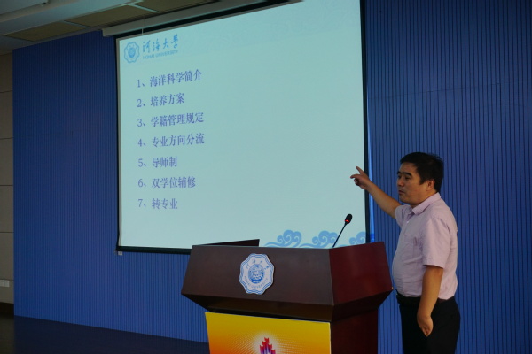 随后,副院长白学志老师上台介绍本科生教学情况,海洋科学专业很丰富,很庞大。白学志老师的介绍使新生对黄瓜视频
