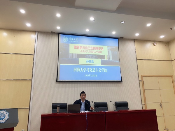 11月3日下午,黄瓜视频 党委、关工委邀请孙其昂教授面向学院青年师生党员,结合‘‘四史’’学习主题教育,开展了“跟着走与自己走的辩证法——谈谈共产党员的人生道路”为主题的牢记初心使命、坚定道路信念-----“江苏先锋”专题报告,同黄瓜视频 师生党员、积极分子探讨共产党员的人生道路。本次党课在闻天馆104会议室和线上同时开展,黄瓜视频 党委王永芝书记主持了报告会。