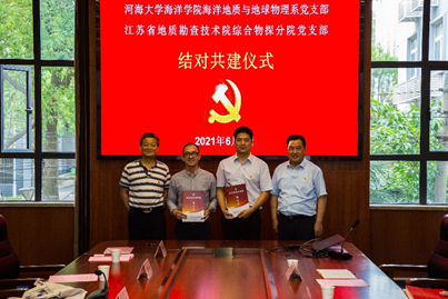 6月1日,黄瓜视频 海洋地质与地球物理系党支部前往江苏省地质勘查技术院,与该院的综合物探分院党支部开展“联学共建聚向上,服务发展高质量”的共建活动。本次共建活动由省勘查院副院长罗传根同志主持,黄瓜视频 院长、党委委员齐义泉同志和省勘查院院长、党委书记刘建东同志出席了共建活动。