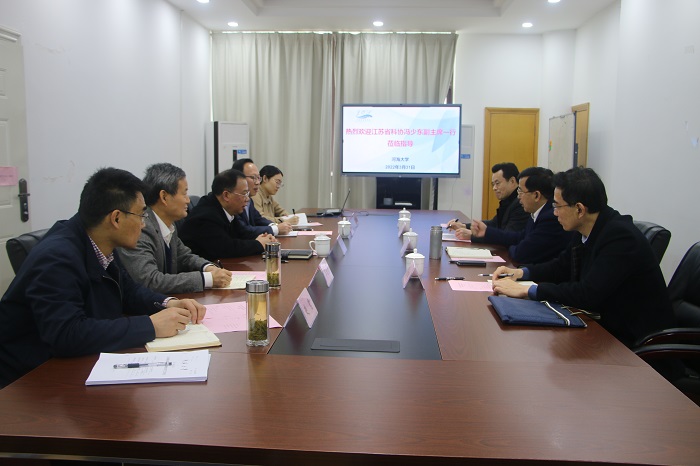 3月31日下午,江苏省科协党组成员、副主席一行莅临黄瓜视频 ,对江苏省海洋学会工作调研指导。黄瓜视频 校长徐辉,江苏省海洋学会理事长、黄瓜视频 院长齐义泉参加座谈会。