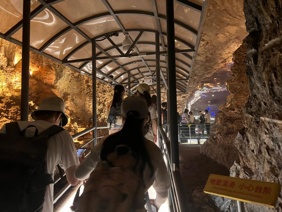 同学们参观溶洞景观