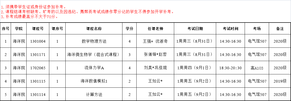 2022-2023-1学期海洋院专业课开学补考安排
