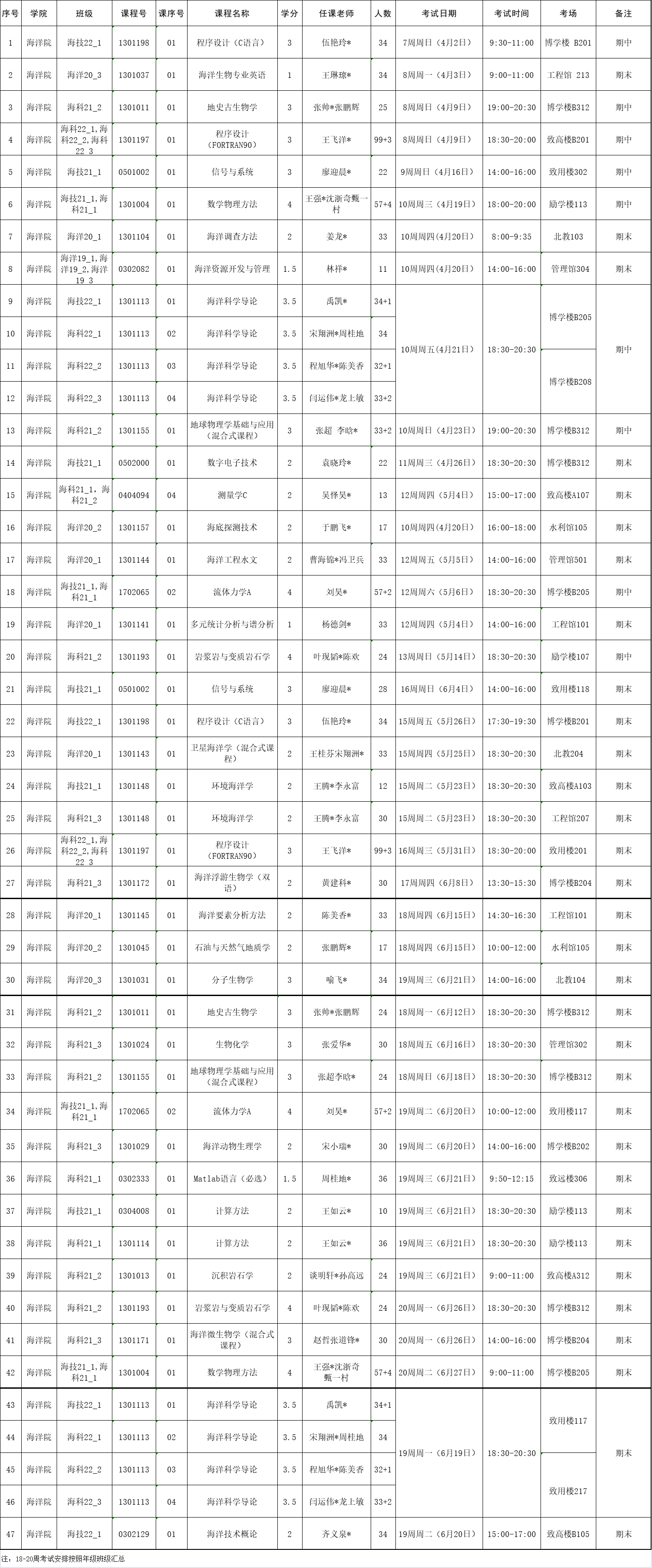 2022-2023--2学期海洋院专业课考试安排