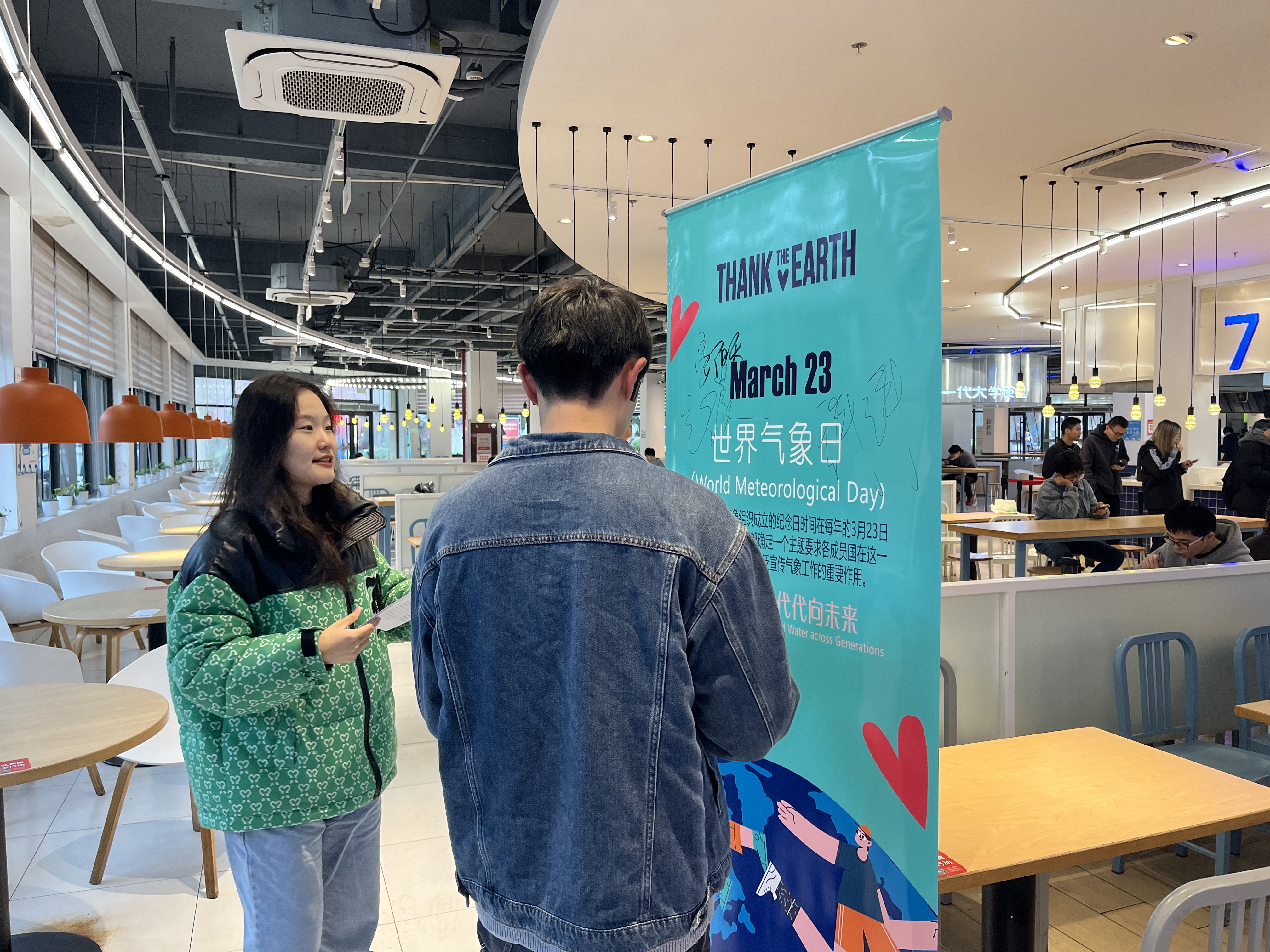 2023年3月23日,黄瓜视频 “世界气象日”科普活动在西康路校区一食堂前顺利举办。本次活动中黄瓜视频 志愿者通过发放传单,讲解以及展板展示的形式,向学校师生科普宣传水资源在天气与气候系统中的重要意义。