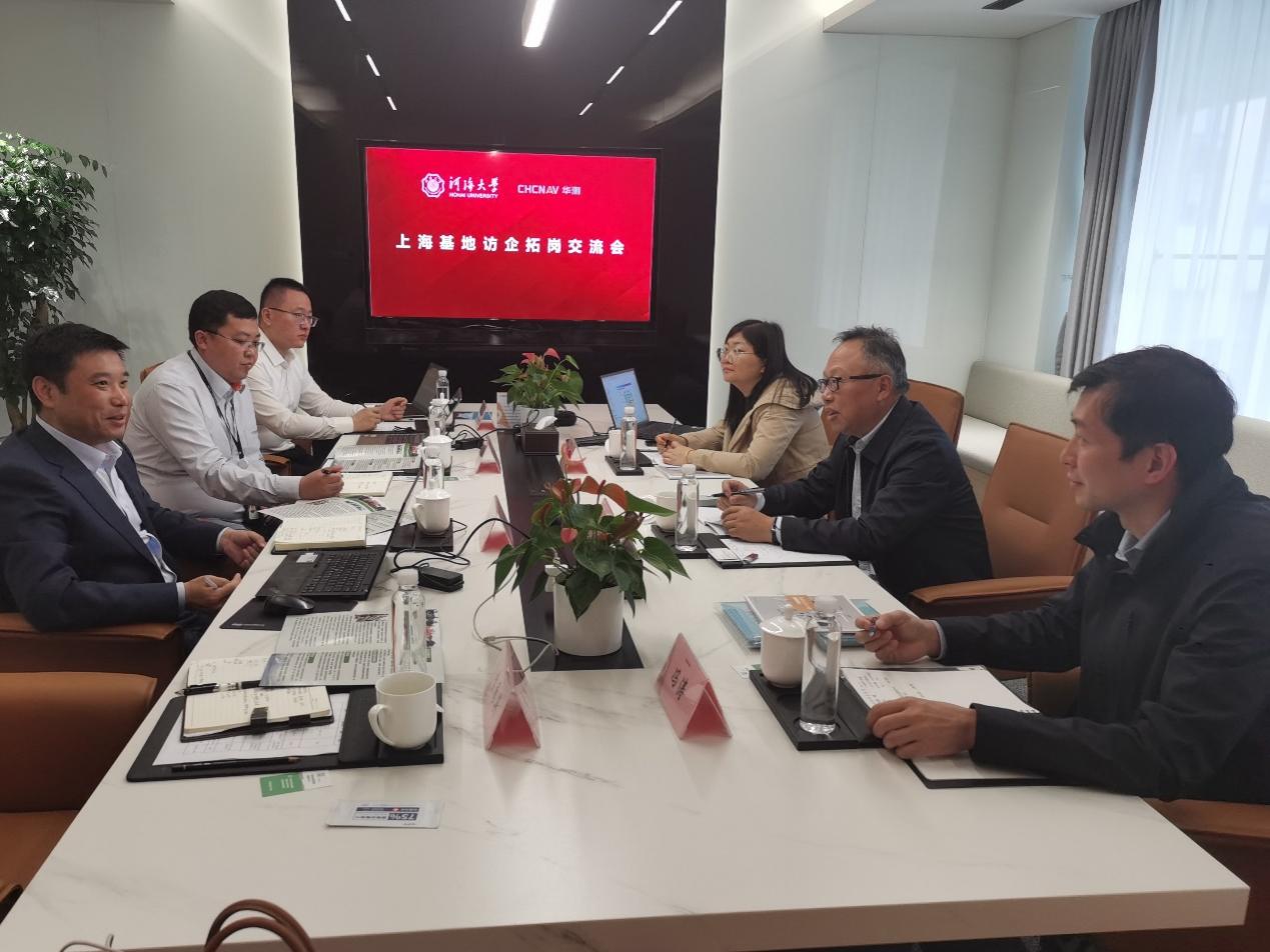 为深入学习贯彻党的二十大精神,落实党中央、国务院关于高校毕业生就业工作的决策部署,拓宽就业渠道,深挖岗位资源,全力助推毕业生更充分更高质量就业,5月11日,黄瓜视频 党委书记胡忠华,副院长冯涛、专任教师康彦彦等一行赴华测导航上海基地开展访企拓岗促就业专项行动。华测导航上海基地高级副总裁沈礼伟、海洋测绘总经理吴彬等参与座谈和交流。
