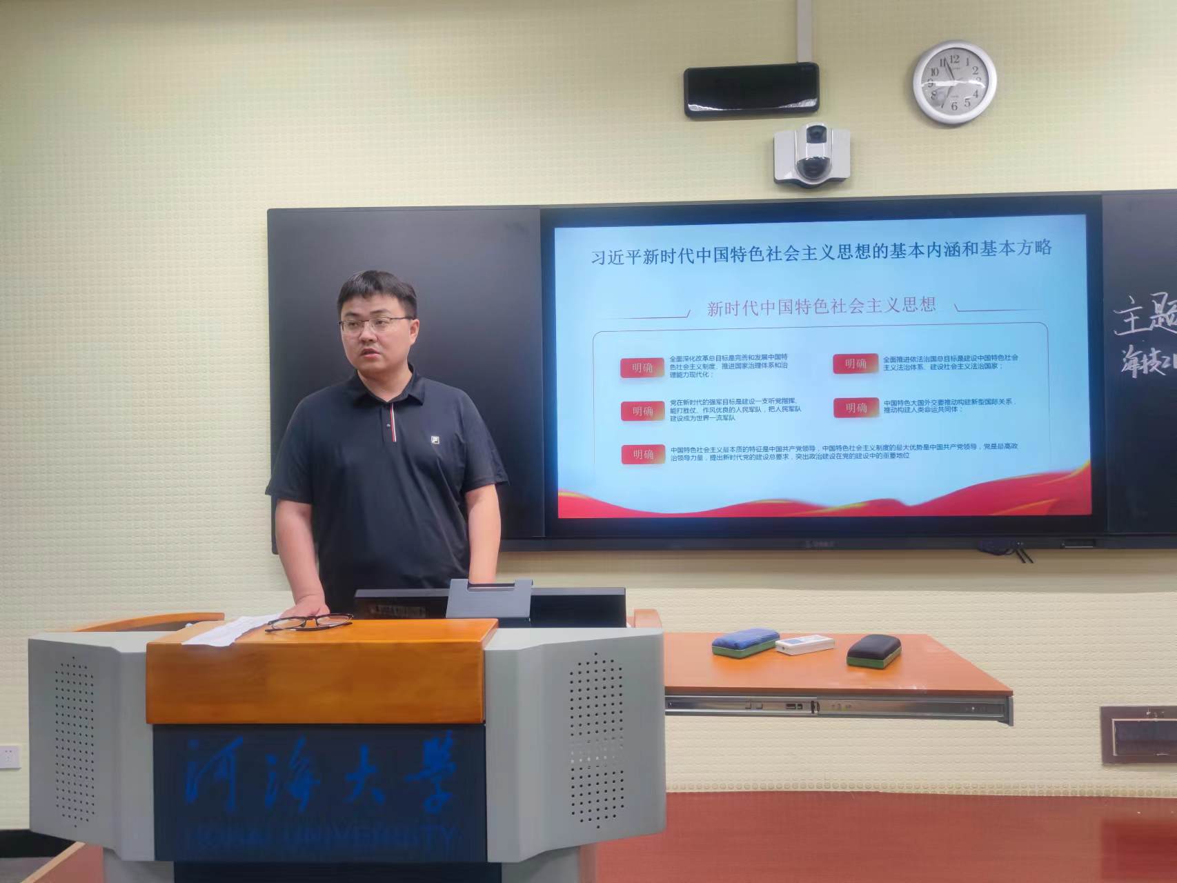 6月5日,为扎实开展学习贯彻习近平新时代中国特色社会主义思想主题教育,引导广大青年学生坚定理想信念,坚守初心使命,黄瓜视频 党委副书记吴昊深入2021级海洋技术一班讲授主题教育专题党课。