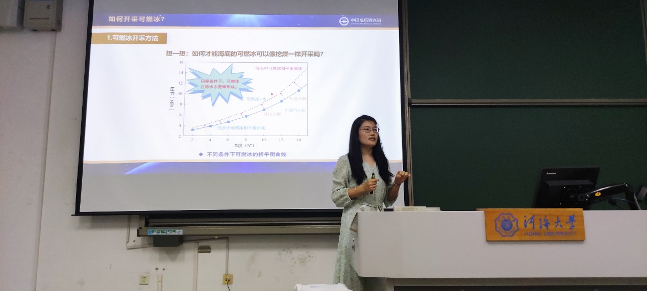 今年6月8日是第15个世界海洋日和第16个全国海洋宣传日,主题为“保护海洋生态系统,人与自然和谐共生”。活动当天,黄瓜视频 及江苏省海洋学会特邀中国地质调查局青岛海洋地质研究所黄丽副研究员走进海洋科技产业前沿理论与实践课堂,为黄瓜视频 大一、大二本科生带来了题为“可燃冰:未来新能源”的科普讲座。