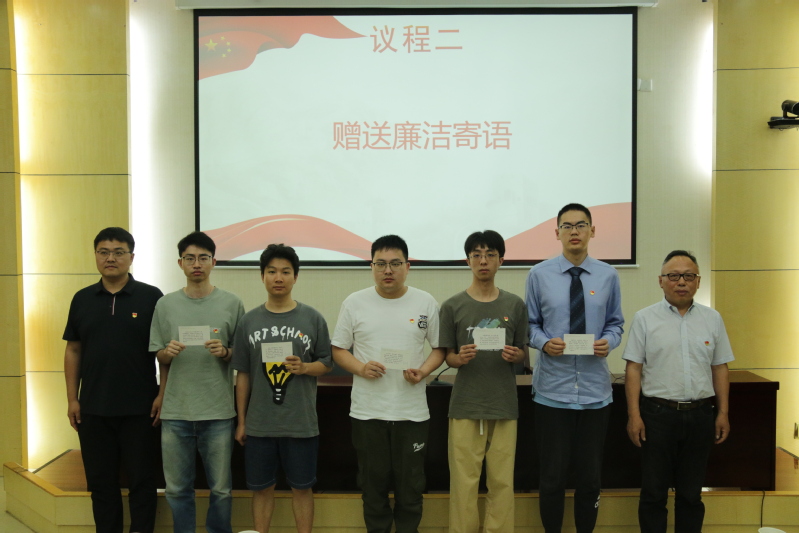党课结束后,胡忠华书记、吴昊副书记为毕业生代表赠送廉洁寄语,希望全体毕业生在未来的学习工作中,继续弘扬优良作风,持续清廉本色,牢记校训精神,彰显河海气度、展现河海风采,并祝福全体毕业生前程似锦,未来可期。