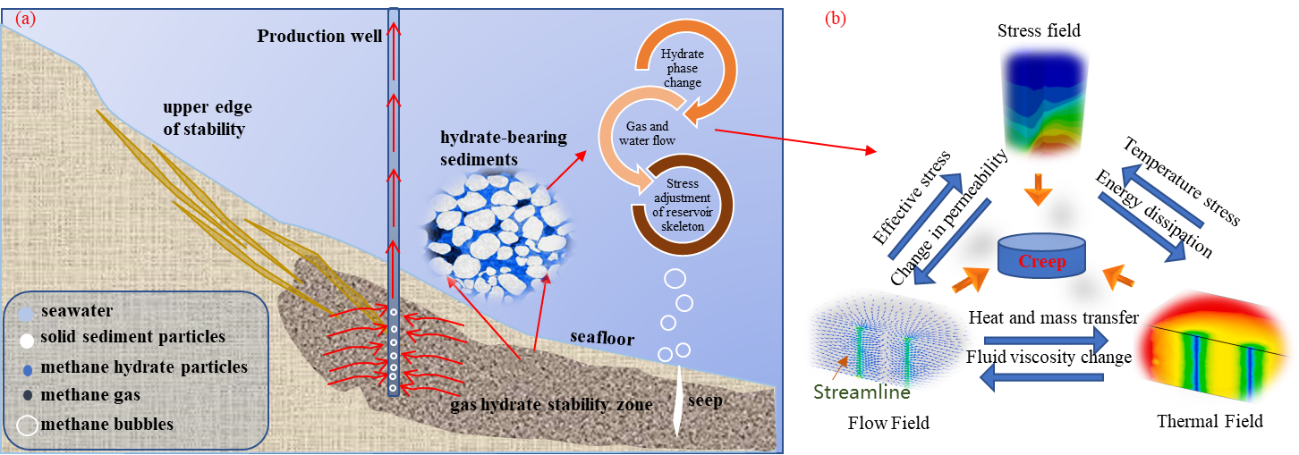 海洋天然气水合物储层的静力学特性已被广泛关注,因其直接决定着储层是否会发生井筒失稳、海底沉降、海底滑坡等地质灾害。然而,水合物长期开采导致的储层蠕变却较少为人们所关注,但其也是导致储层失稳的潜在风险之一。目前还缺乏对这类变形研究进展的有效梳理。
