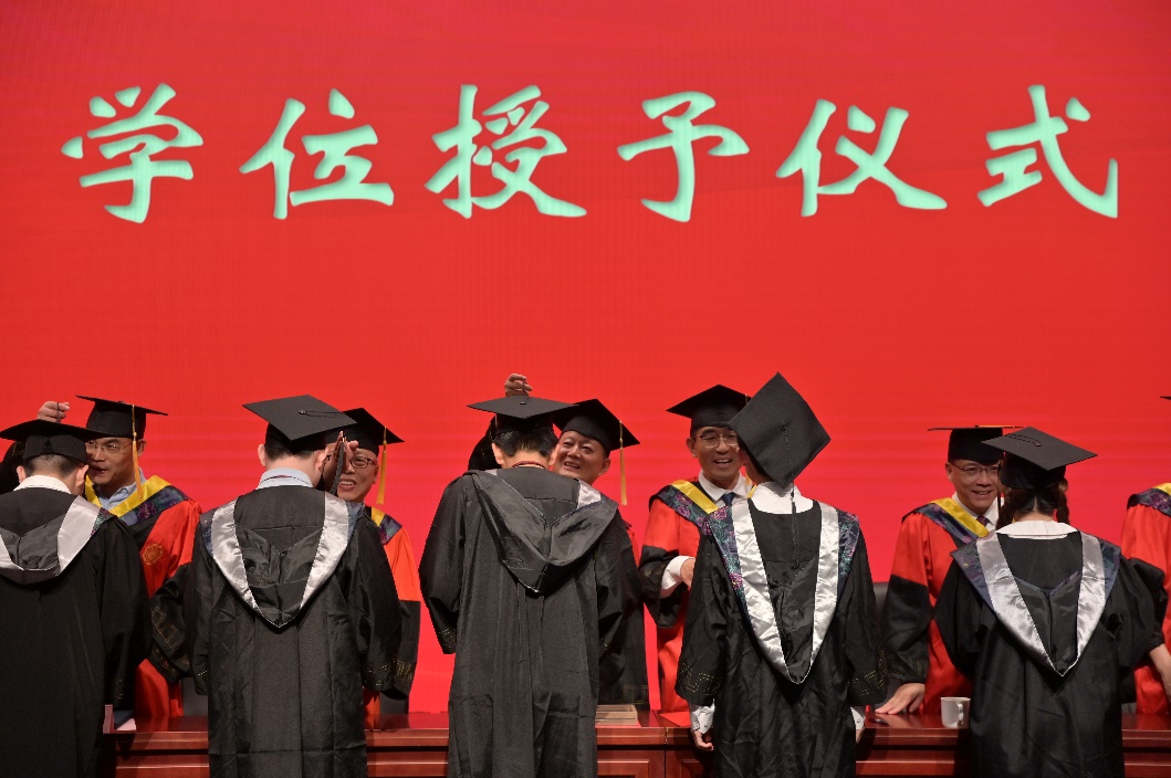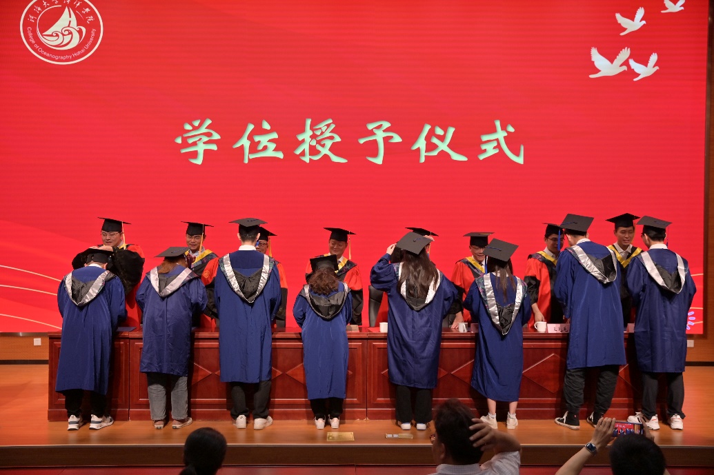 校友代表和学院领导分别为每一位毕业生拨穗并颁发学位证书并合影留念。毕业典礼结束之际,全场师生同唱“毕业歌”,黄瓜视频 2023届毕业典礼暨学位授予仪式圆满落下帷幕。2023届毕业生将带上祝福、期望与爱展翅飞翔,勇往直前,奔赴祖国的江河湖海,施展才华,报效祖国,在实现国家和民族振兴的历史进程中书写人生华章。