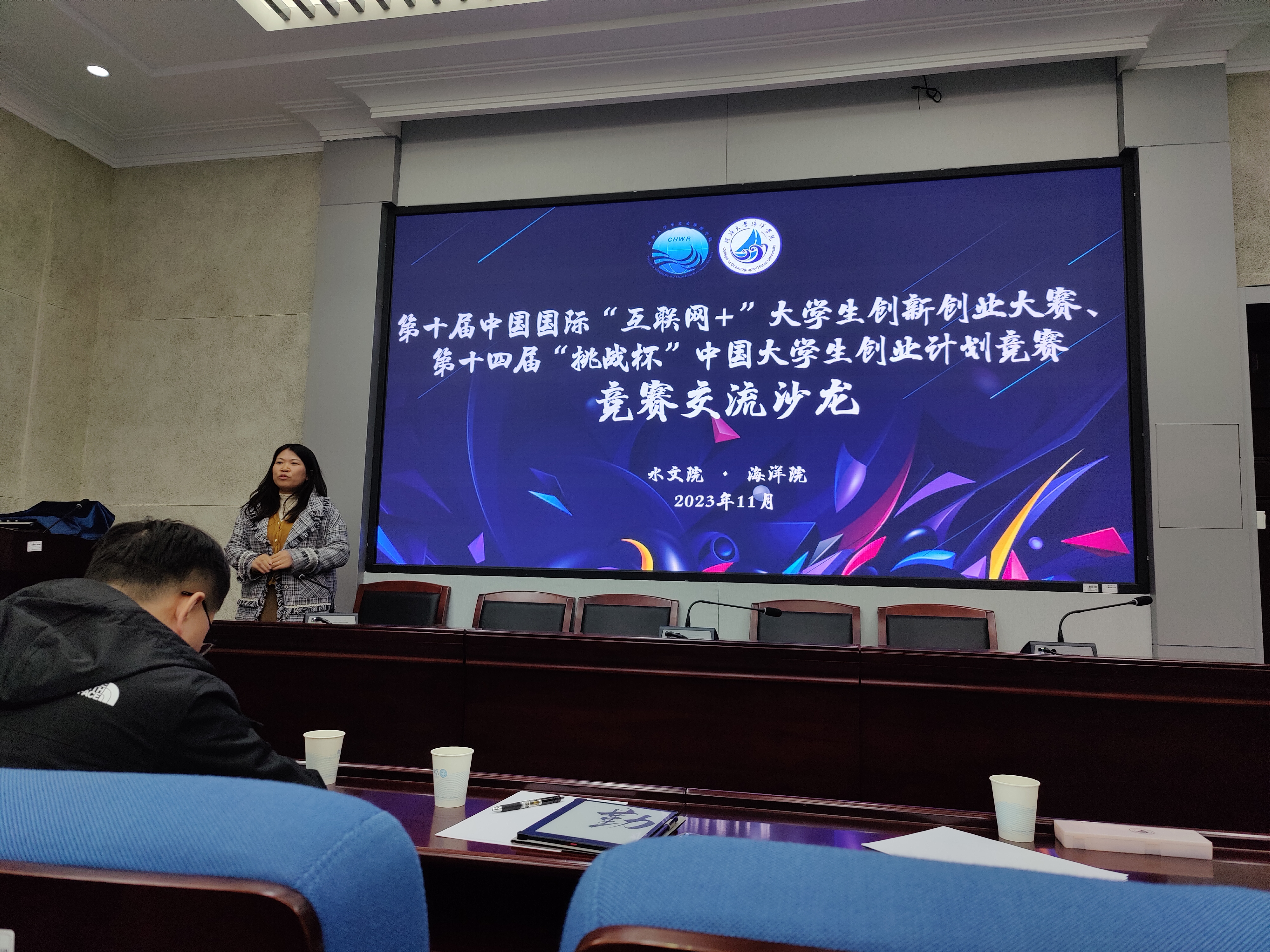 近日,黄瓜视频 和水文院在工程馆301联合举办第十届中国国际“互联网+”大学生创新创业大赛、第十四届“挑战杯”中国大学生创业计划竞赛交流沙龙,水文院党委副书记陈培玲、海洋院党委副书记吴昊、两院备赛团队参加,活动由海洋院团委书记安杰晶主持。