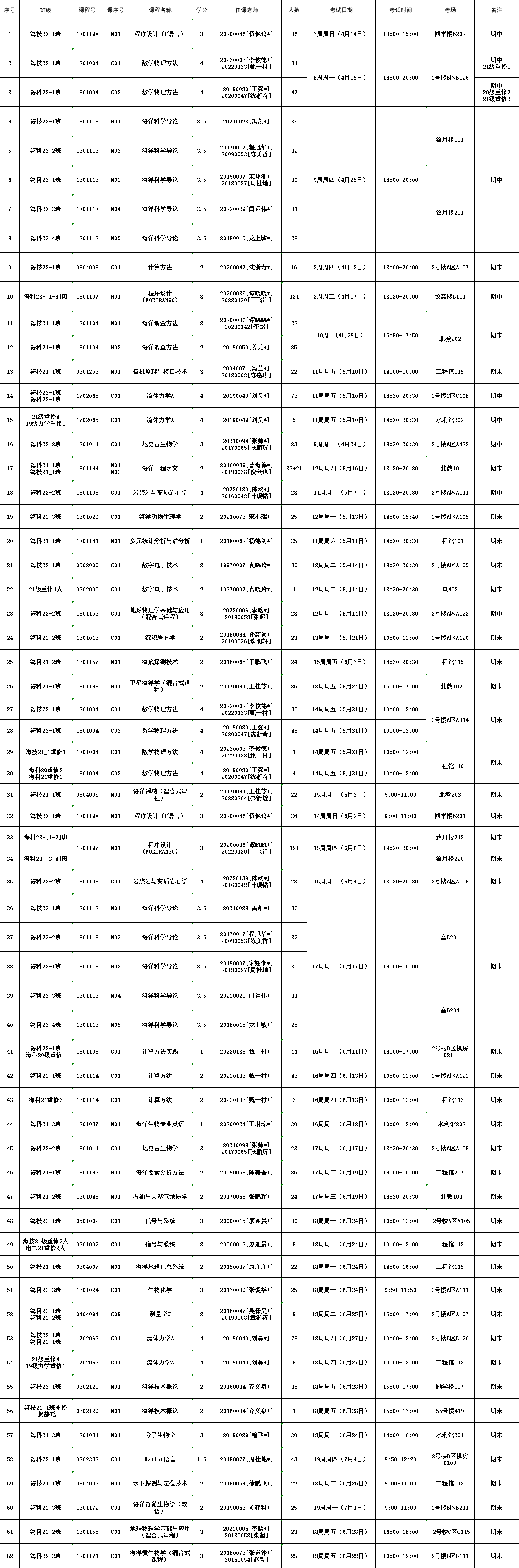 2023-2024--2学期海洋院专业课考试安排