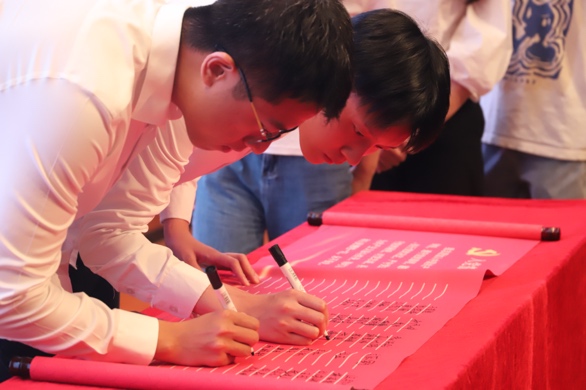 为把“政治生日”的外在仪式转化为党员党性意识的自觉提升,全体党员逐一上台,在入党誓词旁郑重签下自己的姓名,时刻提醒自己履行政治承诺,做表率、当先锋,奋力书写为中国式现代化挺膺担当的青春篇章。活动在庄严的国际歌中落下帷幕。