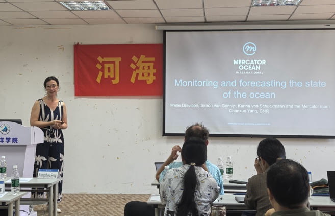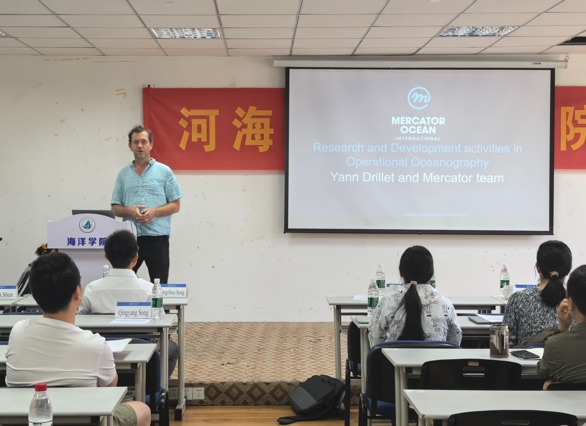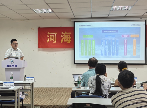 沈浙奇副教授主持了“法国麦卡托海洋国际中心-黄瓜视频 “(MOi-HHU)学术研讨会。会上,麦卡托中心的Yann教授和Marie教授分别介绍了中心在业务化海洋学方面的科研项目和数据服务,也向黄瓜视频 的学生推广了法国的学位政策和留学机会,为双方后续的人员交流提供了机会。基于去年共同参加“海洋十年”研讨会的基础,沈浙奇副教授首先介绍了黄瓜视频 基本概况和科教融合成果,然后交流了学院相关科研团队在业务化海洋学方面的一系列科研工作。本次研讨的宗旨在于深化相互理解,推进双边合作,并为未来双方在科研和人员方面的合作奠定基础。学院师生积极参与研讨会并提问交流。