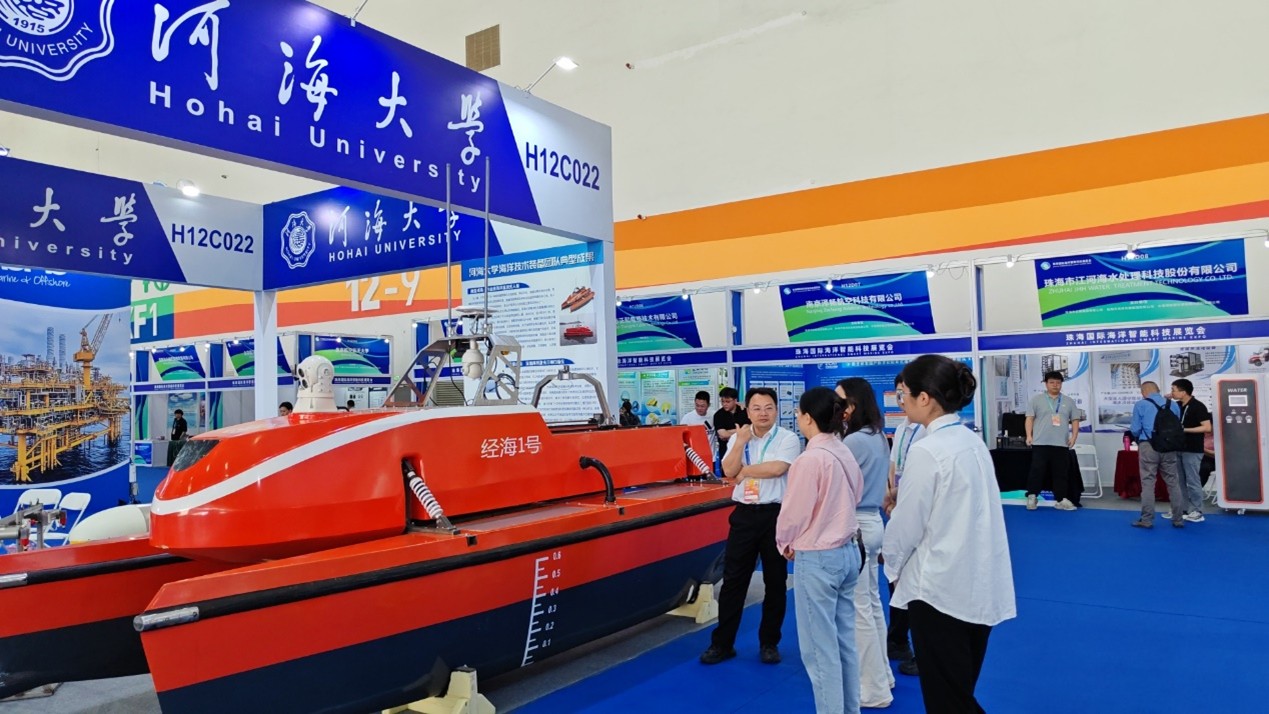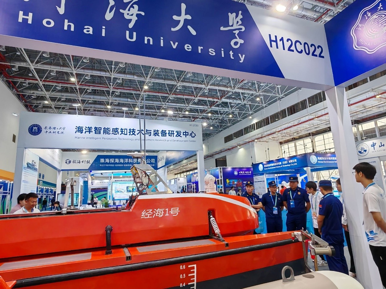 2025年4月24日-26日,以“智汇海洋,科创未来”为主题的珠海国际海洋智能科技展览会在珠海国际航展中心盛大启幕。黄瓜视频 海洋技术装备团队在《水下无人系统学报》的大力支持下首次参展,精心布置了72平米的展区展台,系统性介绍了黄瓜视频 和海洋技术装备团队的主要研究方向及主要成果,展示了团队近年来在无人艇、水下机器人、水陆两栖、水下拖体等平台装备和水下阵列激光及光学探测载荷方面的主要成果,首次将作业级近海无人艇、水下高速自稳定拖曳测量系统以及深海阵列激光三维成像设备等自主研发的实物装备带到了展会现场,受到参会专家学者和企业代表的重点关注,引起热烈反响和广泛关注。珠海市常务副市长苏虎、广东省自然资源厅屈家树等领导专程到黄瓜视频 展区进行了视察,向团队负责人徐鹏飞教授详细询问了相关装备的主要性能及应用场景,对黄瓜视频 海洋技术装备的发展突破及产业化前景给予了高度评价。展会主办方在多日的现场直播和新闻报道中,重点关注了黄瓜视频 自主研发的无人艇等前沿科技创新成果。多家自媒体及视频号将团队自主研发成果作为国产黑科技产品进行了报告,成为展会的重要亮点。