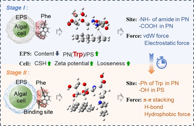 胞外多聚物(EPS)是微生物分泌的位于“水-细胞”界面一类重要的高分子化合物,主要由多糖和蛋白质组成,具有促进细胞吸附化学污染物的生态作用。以往的研究发现EPS中的色氨酸(Trp)成分是生物吸附污染物时污染物与EPS界面结合的关键活性位点,但分析过程依赖于单时间点采集的“静态”样本,忽略了EPS自身的时间动态特性,导致无法完全阐释EPS与污染物的分子结合模式。