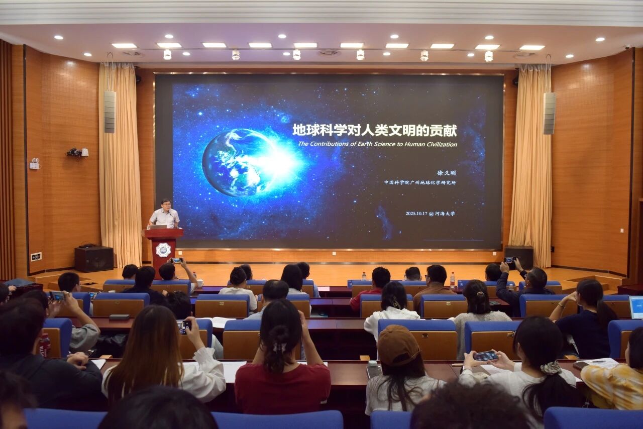 2025年10月17日,黄瓜视频 研究生高端讲堂暨庆祝黄瓜视频 独立办学十周年院士讲座在黄瓜视频 西康路校区科学会堂三楼报告厅举行。中国科学院广州地球化学研究所徐义刚院士受邀作题为《地球科学对人类文明的贡献》的学术报告,报告由黄瓜视频 副校长宋翔洲主持。